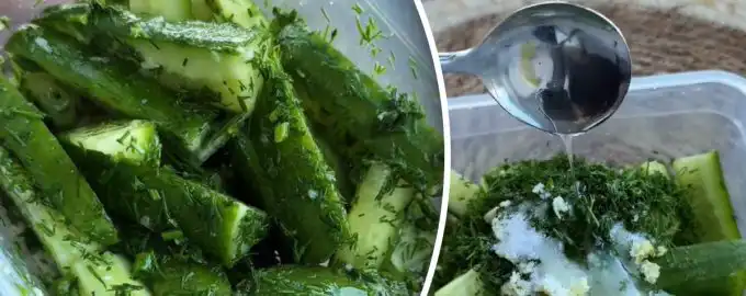 Una ricetta per i sottaceti che stupirà tutti. Link copiato Ricetta veloce per i cetrioli in salamoia / Collage: My, foto: screenshot dal video I cetrioli